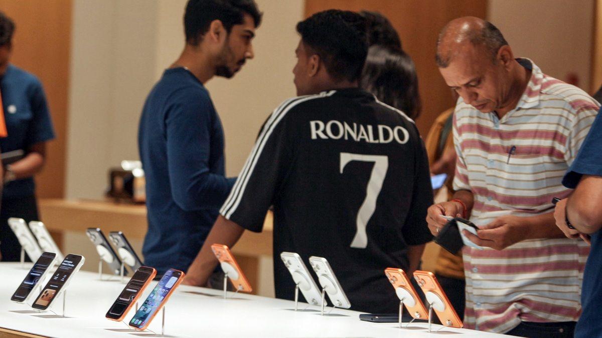 IMAGE: People visit the Apple Store to buy the newly launched iPhone 17 at Select City Walk, New Delhi. Kindly note that this image has been posted for representational purposes only. Photograph: ANI Photo