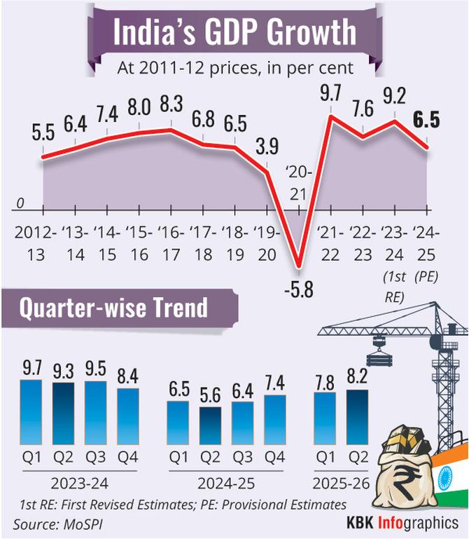 As per data released by the National Statistics Office (NSO), the Gross Domestic Product (GDP) in the first half of 2025-26 worked out to be at 8 per cent, up from 6.1 per cent in the year-ago period.