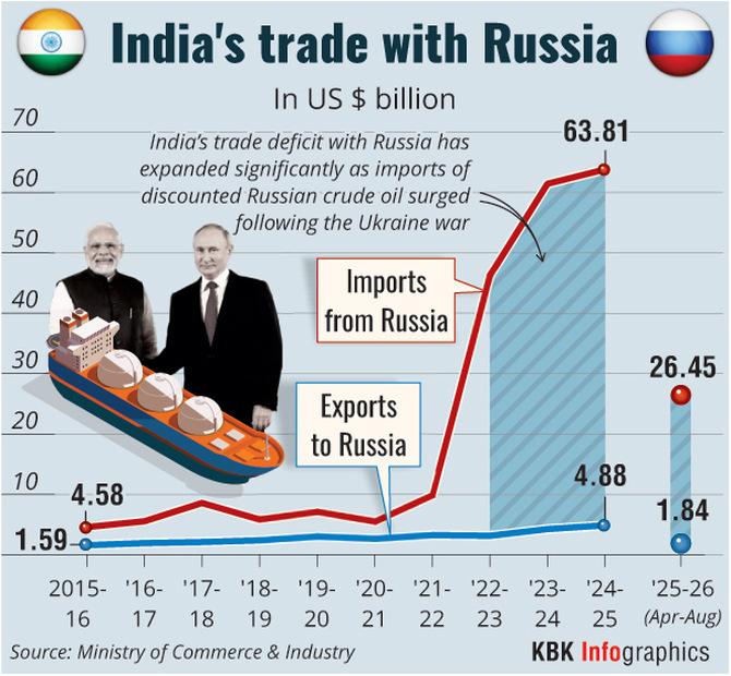 India’s merchandise trade with Russia remains sharply imbalanced, with modest export growth alongside persistently high energy-driven imports.